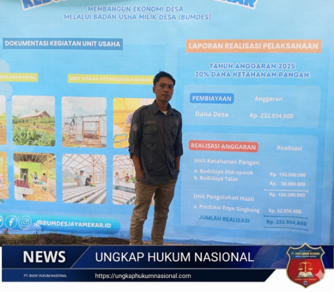 Ketua BUMDes Tenjo Jaya, Dodi Surya Dinata, menyampaikan bahwa kegiatan panen perdana tersebut merupakan bagian dari pelaksanaan program ketahanan pangan yang telah direncanakan dan diajukan kepada Pemerintah Desa Tenjo Jaya sejak tahun anggaran 2025, dan kini memasuki tahap awal implementasi.