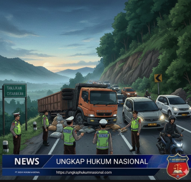 SUKABUMI — ungkaphukumnasional.com Kecelakaan lalu lintas tunggal melibatkan sebuah truk Mitsubishi Fuso terjadi di tanjakan Cisarakan, Jalan Kiara Lawang, Desa Buniwangi, Kecamatan Palabuhanratu, Kabupaten Sukabumi, Rabu (28/1/2026) sekitar pukul 05.00 WIB.
