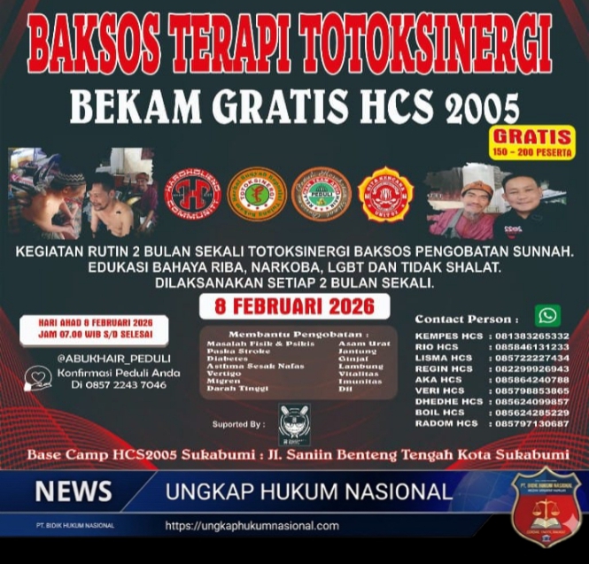 SUKABUMI — ungkaphukumnasional.com // Basecamp Hardoliend Community Since 2005 (HCS) kembali menunjukkan kepeduliannya terhadap kesehatan masyarakat dengan menyelenggarakan kegiatan bakti sosial berupa terapi totok sinergi dan bekam gratis, yang terbuka untuk masyarakat umum.