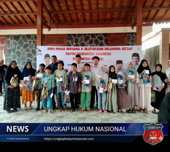 CIANJUR – ungkaphukumnasional.com || Di tengah gemuruh hiruk-pikuk politik yang kerap diwarnai dinamika kekuasaan, Dewan Pimpinan Daerah (DPD) Partai Solidaritas Indonesia (PSI) Kabupaten Cianjur memilih untuk menyapa masyarakat dengan cara yang berbeda. Mengusung semangat religi dan kepedulian sosial, PSI Cianjur menggelar acara buka puasa bersama yang dirangkaikan dengan pemberian santunan kepada 65 penerima manfaat, terdiri dari anak yatim dan kaum lansia, di Pendopo Tumaritis, Cianjur, Jumat sore.