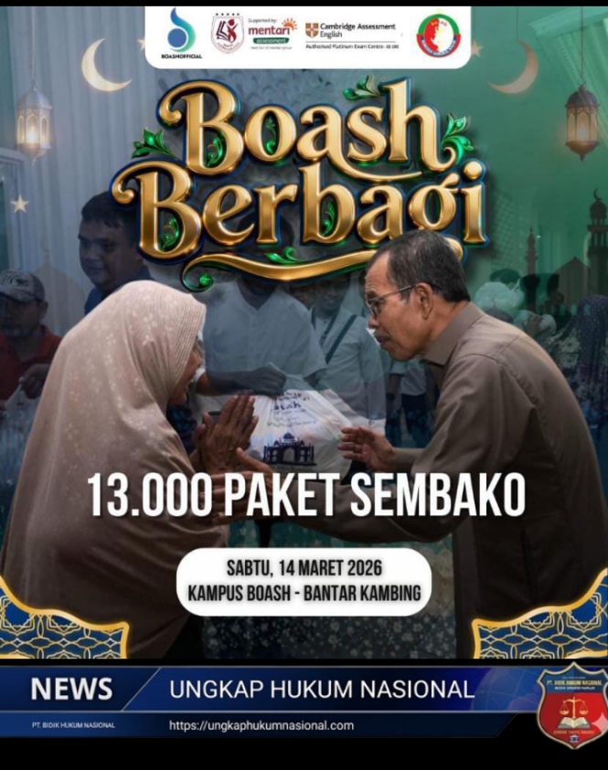 14 Maret 2026 || Sebagai bentuk kepekaan serta kepedulian bagi sesama yang sangat membutuhkan, apalagi dalam rangka persiapan menyambut Hari Raya Idul Fitri 1447 Hijriah yang hampir tiba, Yayasan Borcess Ashokal Hajar (BoAsh) memberikan bantuan 13.000 paket sembako.