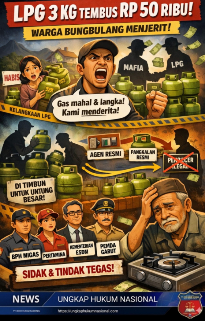 Garut Bungbulang — ungkaphukumnasional.com || Distribusi gas LPG subsidi tabung 3 kilogram di Kecamatan Bungbulang menuai sorotan tajam. Di tengah mandat negara menjamin energi terjangkau bagi rakyat kecil, warga justru dipaksa membeli gas melon dengan harga “fantastis” antara Rp 45.000 hingga Rp 50.000 per tabung di warung-warung pengecer. Rabu, 25/03/2026.