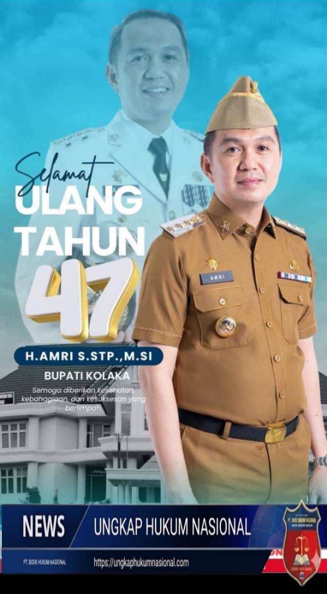 28/03/2026 || Hari ini, Kabupaten Kolaka tidak hanya merayakan bertambahnya usia sang pemimpin, tetapi juga dedikasi yang tak kunjung padam. H. Amri, S.STP., M.Si, Bupati Kolaka yang dikenal dekat dengan rakyatnya, resmi memasuki usia ke-47 tahun.