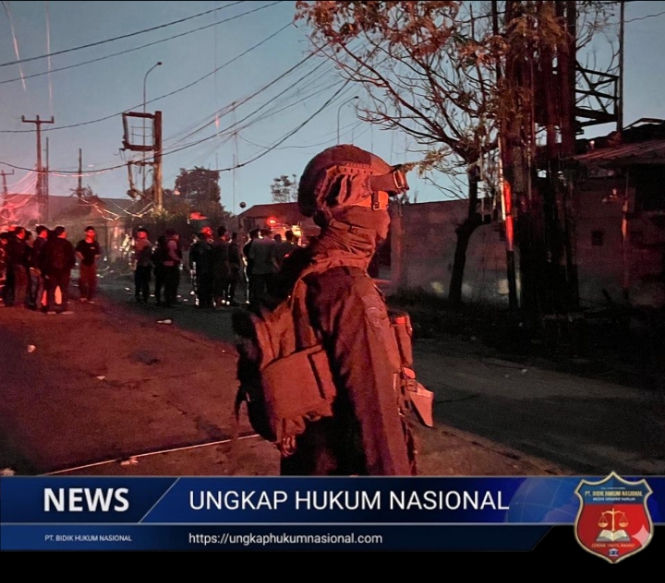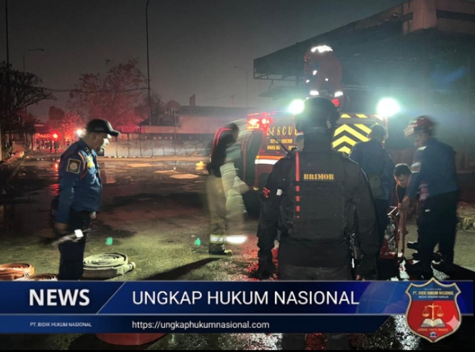 Bekasi – ungkaphukumnasional.com Personel Batalyon D Pelopor Satuan Brimob Polda Metro Jaya bergerak cepat melakukan pengamanan dan penanganan kebakaran di area SPBE PT Indogas Andalan Kita, Cimuning, Mustika Jaya, Kota Bekasi, Kamis dini hari (2/4/2026). Kebakaran di fasilitas gas elpiji tersebut berhasil dikendalikan oleh petugas pemadam kebakaran, sementara aparat memastikan kondisi tetap aman bagi masyarakat sekitar.