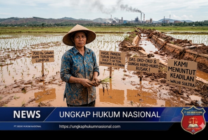 Berdasarkan hasil investigasi lapangan yang dilakukan WALHI Sultra di lima desa—yakni Desa Pesouha, Pelambua, Totobo, Huko-Huko, dan Lamedai—ditemukan fakta memprihatinkan. Sekitar 700 hektar sawah milik warga dilaporkan tercemar akibat banjir lumpur.
