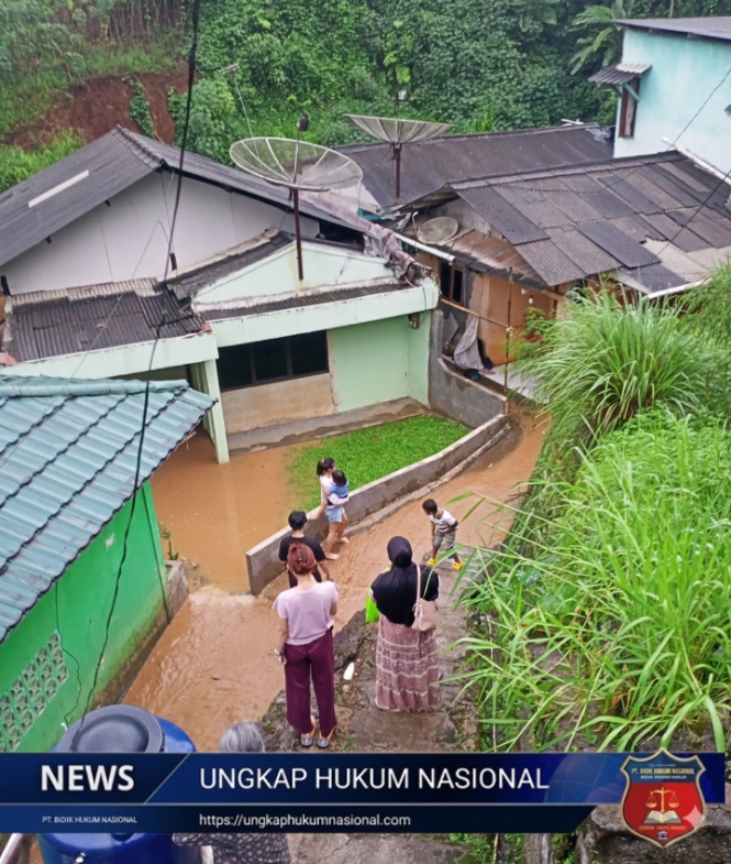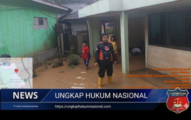 SUKABUMI — ungkaphukumnasional.com || Hujan deras disertai angin dan petir yang mengguyur wilayah Kecamatan Cibadak, Kabupaten Sukabumi, Kamis (16/04/2026), menyebabkan sungai meluap dan merendam permukiman warga.