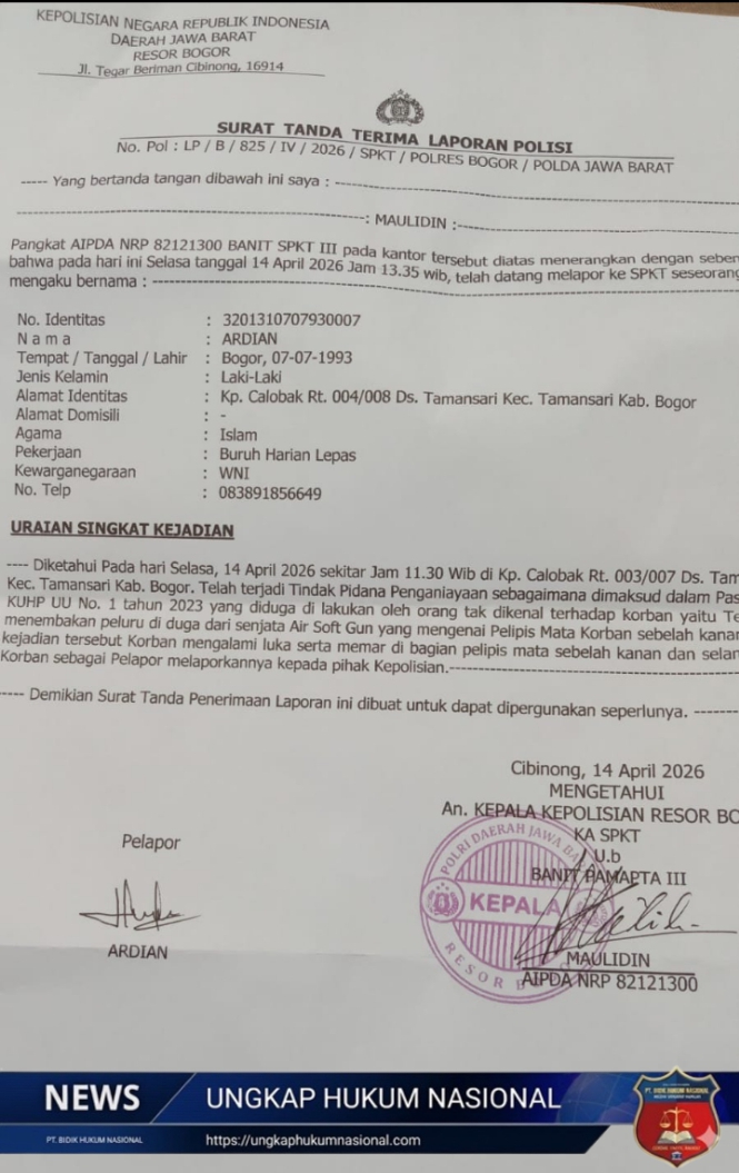 Pasca Kejadian exekusi rumah milik Herman,di kampung calobak desa taman sari kecamatan tamansari Korban tembakan air gun ardian meminta keadilan kepada pihak kepolisian polres Bogor.hal ini dikatakan Ardian saat mendapatkan perawatan intensif di rumah nya.jumat (17/04/2026).