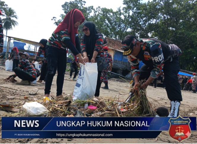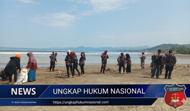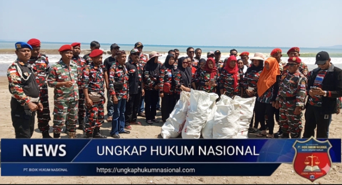 Organisasi Laskar Merah Putih (LMP) Markas Cabang Kabupaten Sukabumi menggelar kegiatan aksi bersih-bersih pantai di kawasan Pantai Citepus, Kabupaten Sukabumi, pada Senin (27/04/2026).
